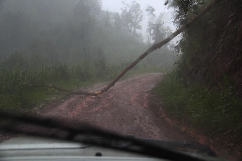 ขับมาได้สักครู่ฝนตกหนักอีกแล้ว