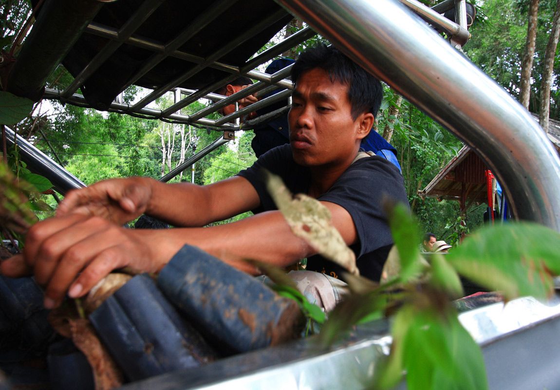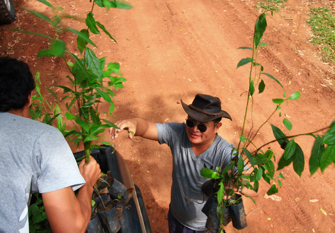 ช่วยกันขนกล้าไม้ใส่รถลุงหนวด