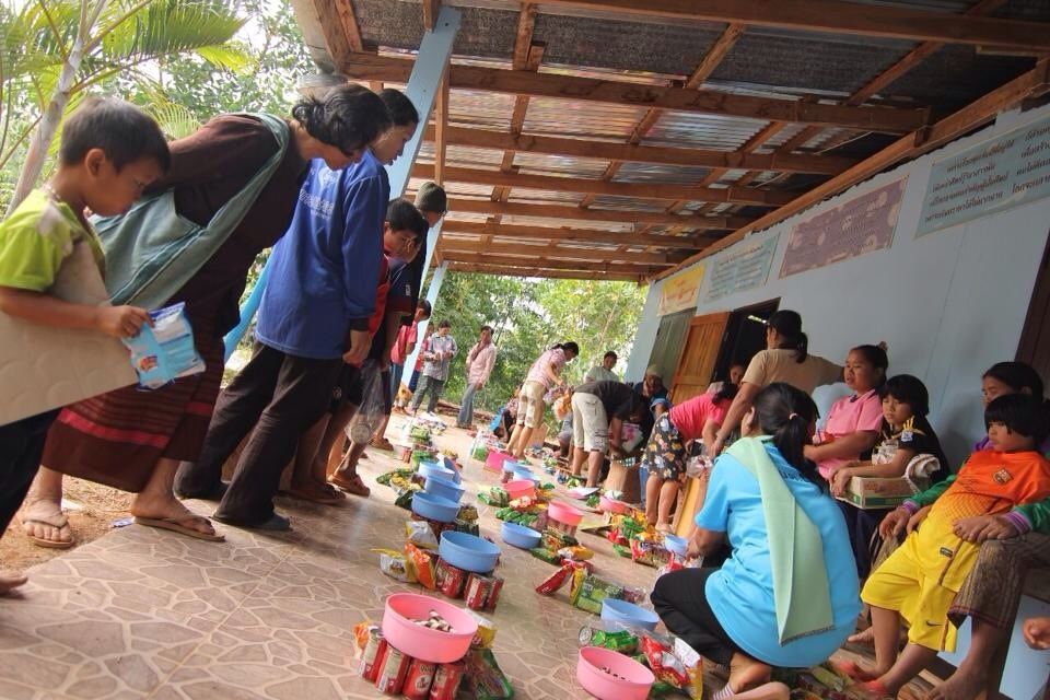 จากที่ หมู่บ้านและโรงเรียน รวมๆแล้ว คนไม่มากเท่าไหร่ เราเลยได้แจกกันทั่วๆเลย. ดีใจจริง..!