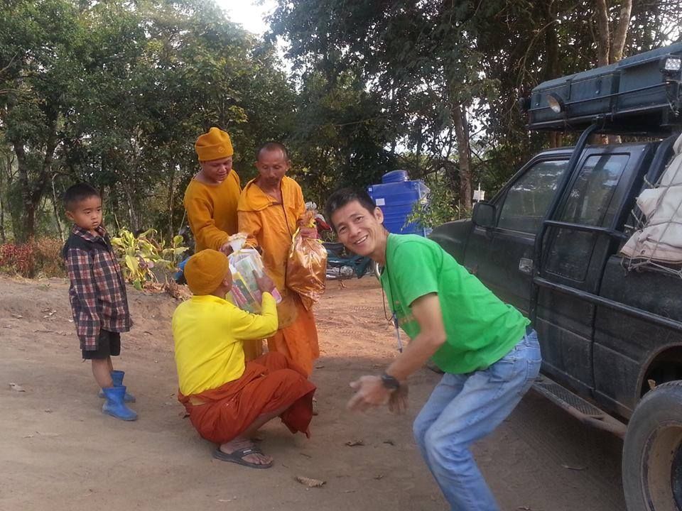 การเดินทางเริ่มจากชลบุรีที่เดิม รถ 2คน คน 2คนขนของที่ทางวัดปริจากต่อเพื่อนำไปแจกให้ชาวบ้านบนดอยสูงได้ใช้กัน เช่น เทียนพรรษา หลอดไฟฟ้า เครื่องสังฆทาน ทั้งหมดเราเอาไปให้กับโรงเรียน วัด และชาวบ้านที่ยากจน ได้นำไปใช้ โดยของทั้งหมดนำไปลงที่ ต.แม่ตื่น อ.อมก๋อย แล้วทาง อบต จะนำพาคณะที่มาจากที่ต่างๆขึ้นไปปริจากตามหมู่บ้านบนดอยต่ออีกที..