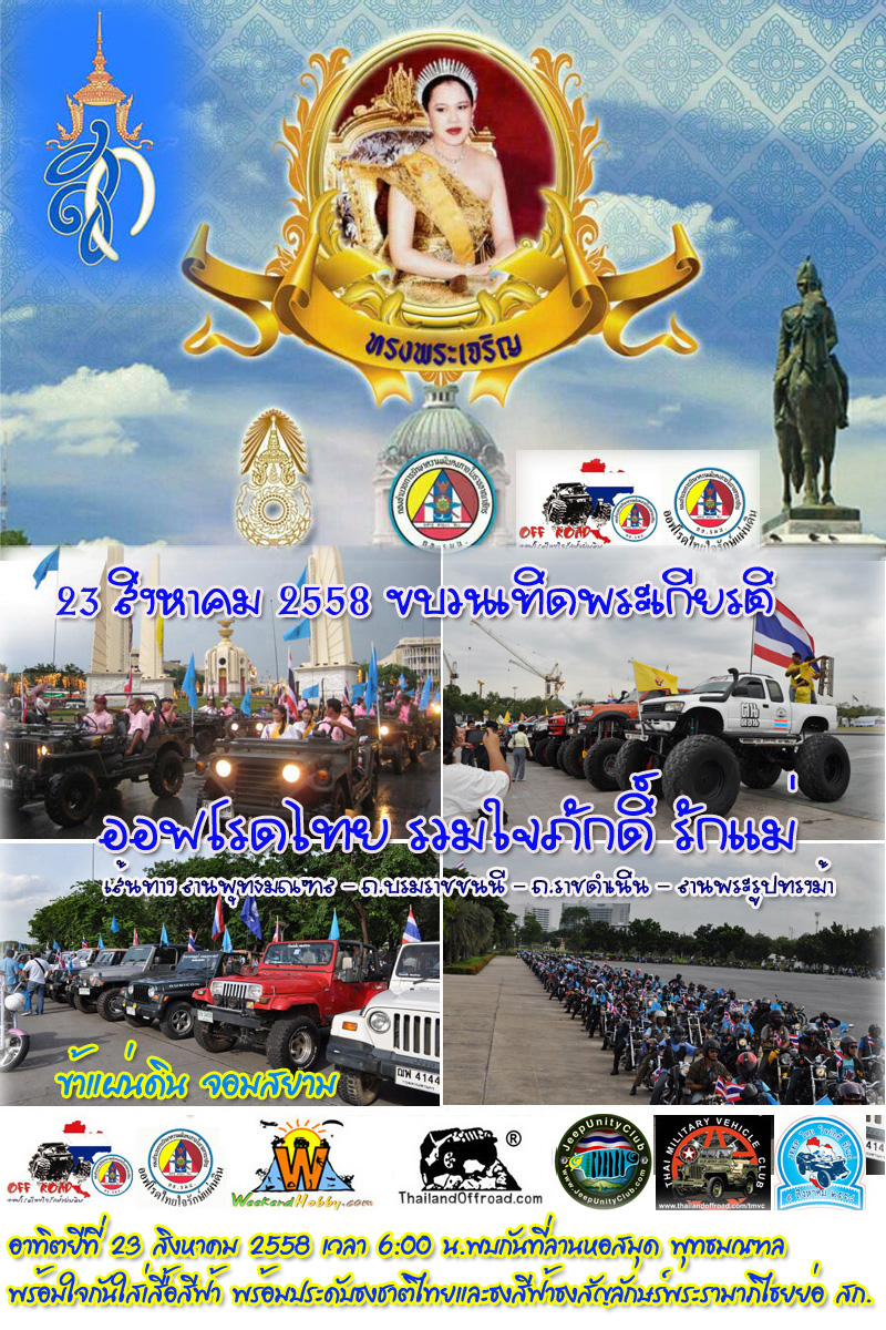 อาทิตย์ที่ 23 สิงหาคม 2558 พบกับกิจกรรม ขบวนเทิดพระเกียรติ ออฟโรดไทย รวมใจภักดิ์รักแม่