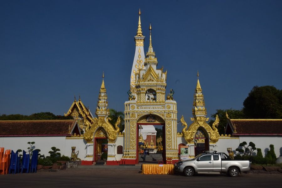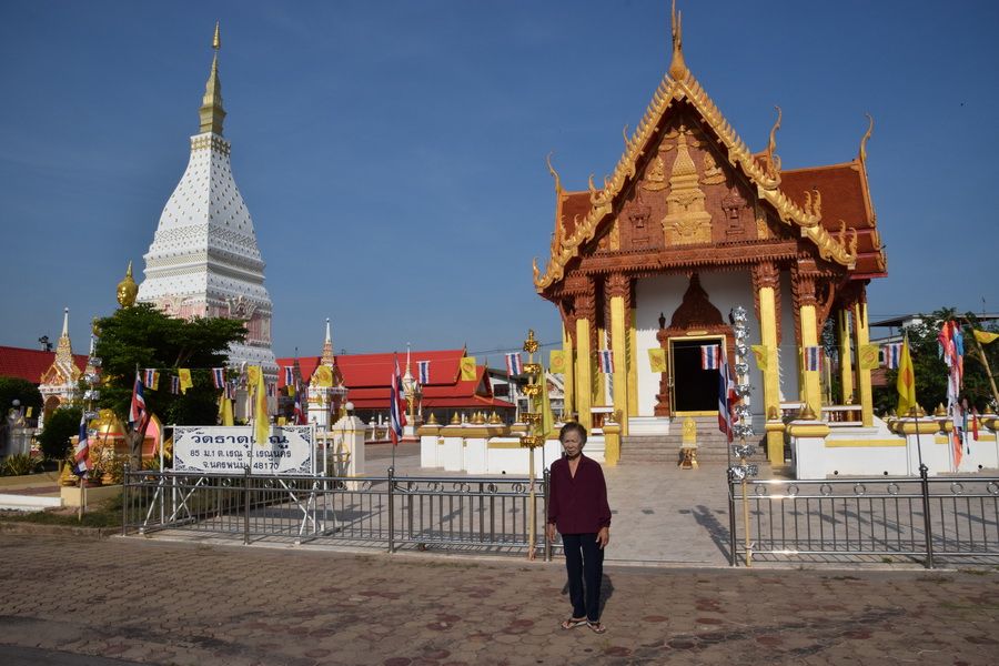 ร่ำลาเพื่อนบ้านที่หน้าประตูองค์พระธาตุเพื่อเดินทางต่อ..