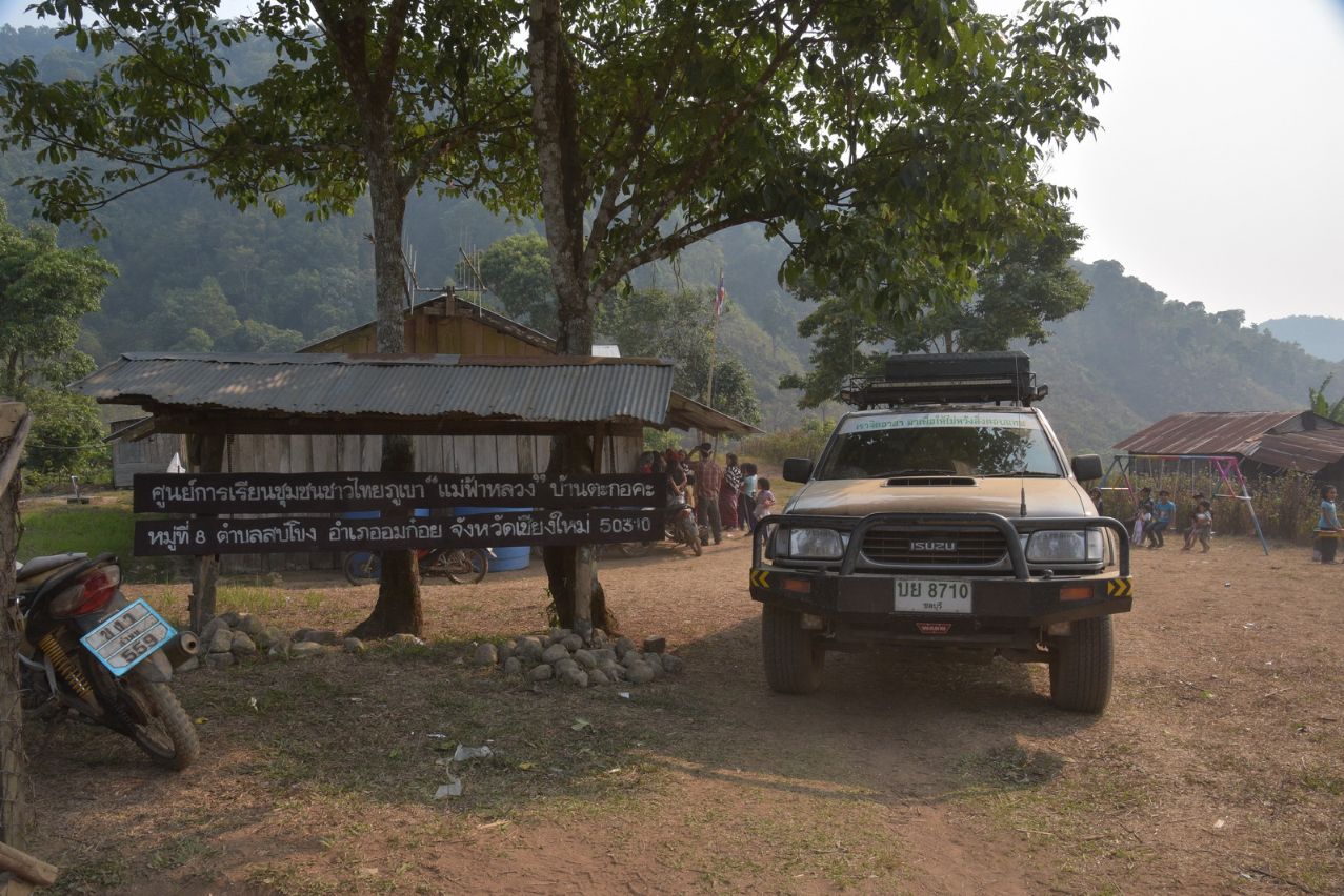 ไม่นานนักเราก็เข้าเขต หมู่บ้านตะกอคะ โรงเรียนอยู่ปากทางเลย..