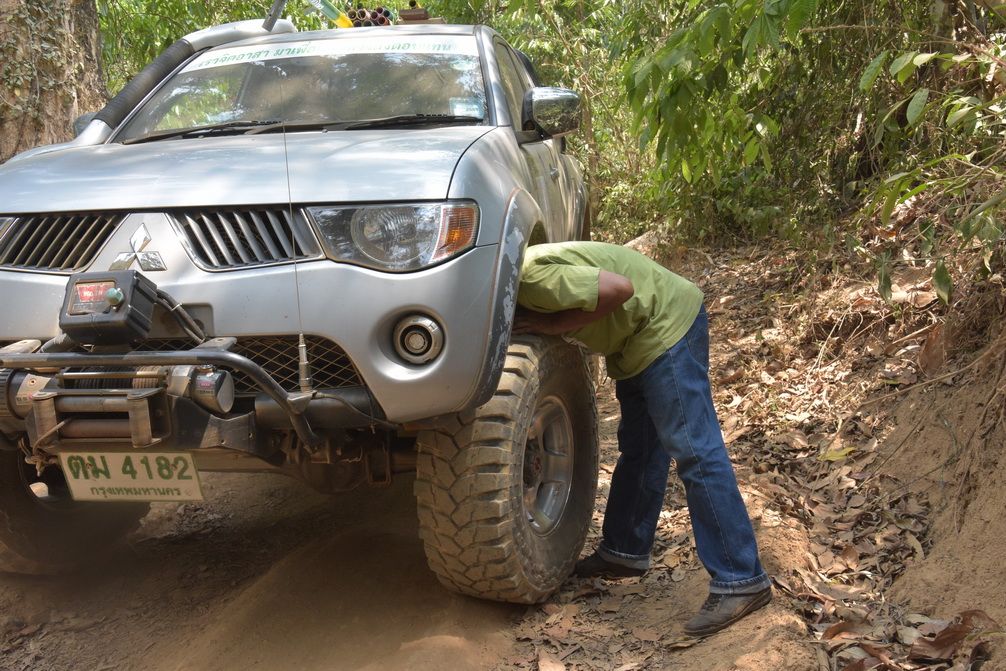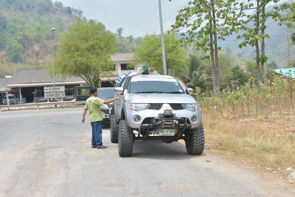 ..ก่องเข้าแหมะคี...ไม่รู้ท่านประธานไปเยียบหนามมาหรือเปล่าเหมือนอะไรติดล้อ...เลยจอดดูกันหน่อย..