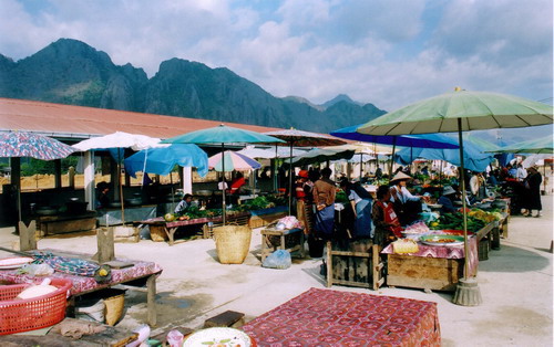 คำตอบที่ 18 จากนั้นก็ เดินทางมาตลาดเช้า ที่วังเวียง ..แต่คณะก็มาถึงช่วงสายๆแล้ว แต่ก็ยังพอมีของกินให้คณะซื้อเก็บเป็นเสบียงมื้อเที่ยงของการเดินทางสู่เมืองหลวงพระบาง...