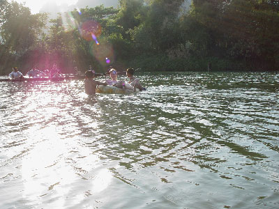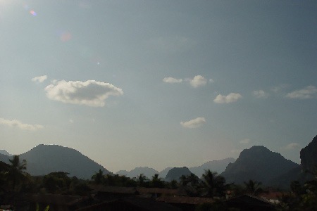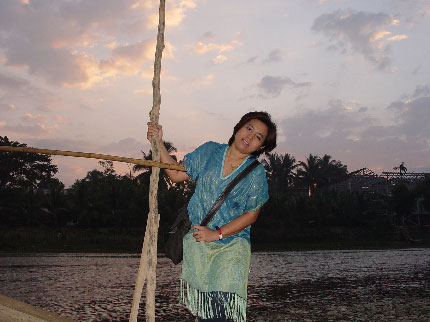 คำเอื้อยแสนดีใจ..หลังจากรอนแรมมาจากแผ่นดินใหญ่.ได้ปีกว่า..วันนี้แหล่ะหนาจะได้แอ่วเมืองลาว..ทุลักทุเลเดินทาง(ก็หนูสมบูรณ์นี่คะ) ได้ข้ามฟากมาเมืองลาวแล้ว..นี่เวียงจันทร์..แต่เอ้เดินทางต่อไปเรื่อย ๆ ระหว่างน้นหนูหลับค่ะ..รู้สึกตัวอีกทีพี่คำอ้ายเอามืออูม ๆ มาสะกิดถึงแล้วย่ะหล่อน..เฮ้ย..หนูจะมาเมืองลาว..หงัยพี่พามาปายล่ะจ้ะ..ฮือ ๆ..หนูจะแอ่วลาว