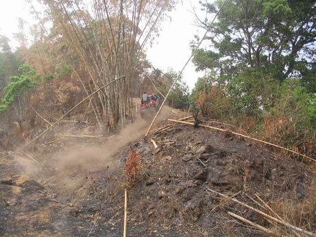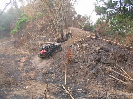 หลังจากที่เข้าไปบ้านขุนสอง เมื่อวันที่ 26 กุมภาพันธ์ 2548 ที่ผ่านมา ซึ่งมี ..ดำสะออน , ฟ้าสะอง , เขียวสะอี๋ (สามตระกูล..สะ..).. จากสภาพเด็กและชาวบ้าน ก็มีความตั้งใจว่าจะกลับมาอีกครั้งพร้อมของบริจาค ประกอบกับชาวบ้านต้องการทำถนนจากหมู่บ้านไปน้ำตกขุนสอง ระยะทางประมาณ 3 กิโลเมตร เพื่อจะแนะนำแหล่งท่องเที่ยวแห่งใหม่ ของ "อมก๋อย" พวกเราจึงได้นัดหมายกันในวันที่ 2 เมษายน 2548 ตอนแรกจะมีรถไปร่วมเปิดเส้นทางจำนวนมาก พอถึงเวลาจริง ก็ติดธุระสำคัญกันหลายคัน ทำให้มีรถร่วมทริปเพียง 6 คน ดำสะออน , คุณสมบัติ 106 และคุณประพันธ์ , คุณนฤดม นีโอ , คุณแอ๊ด อู่ไฮเวย์ , คุณกุ้ง แลนด์โรเวอร์ , คุณอ๊อด แลนด์โรเวอร์ และเมื่อถึงเวลาจริง ๆ ก่อนเข้าเส้นทางใหม่ ก็เหลือรถเพียง 2 คันเท่านั้น คือ ..ดำสะออน และ สมบัติ 106..ส่วนที่เหลือขอตัวไปชมวิว , ถ่ายรูปบนยอดดอยใกล้ ๆ กัน