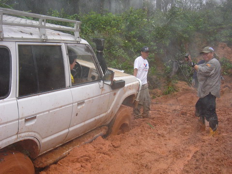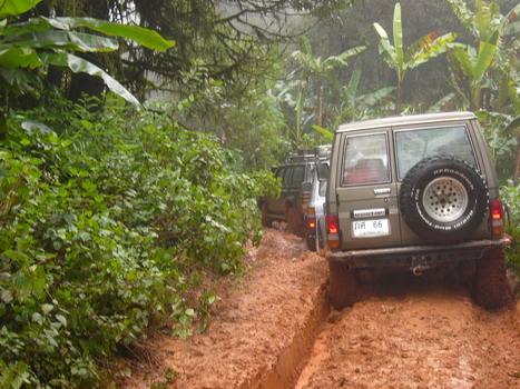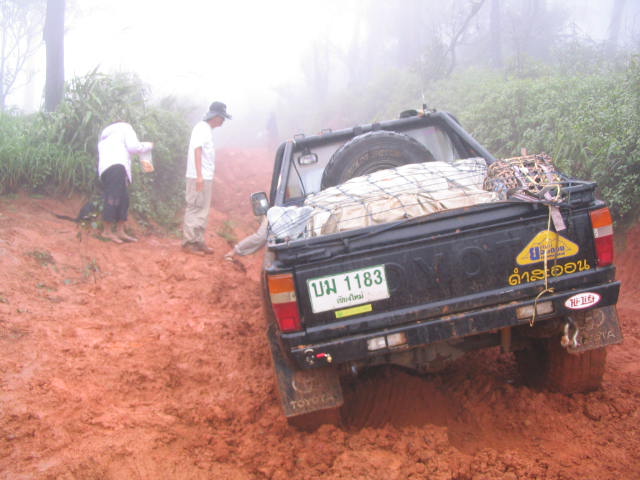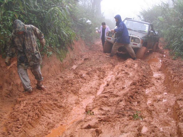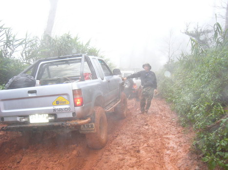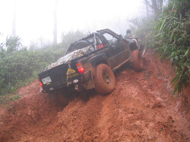 วันที่ 2 ออกเดินทาง 10.00น.จากหน่วยย่อยฯกลับทางเดิม ขากลับก่อนถึงจุดสูงสุด 2 กม. ร่องลึกมาก หลายคันที่ใช้ยางสแวมเปอร์ 36 นิ้ว ยังต้องวินซ์ ส่วน 33 นิ้ว ไม่ต้องพูดถึง จุดนี้วินซ์พัง,ไฟหมด,คันส่งคันชักมีปัญหาหลายคัน ต้องนอนกลางเนิน 5 คัน อีก 4 คันไปรอที่หน่วยใหญ่ฯของพี่ติ๋มทำอาหารรอ แต่กลุ่มหลังหมดแรงก่อนต้องนอนกลางทาง รูปถ่ายค่อนข้างน้อยมัวแต่ลุ้นกัน