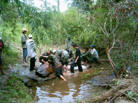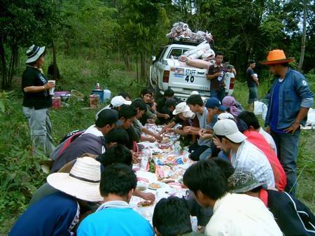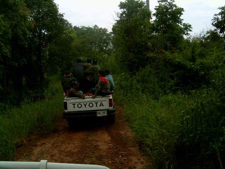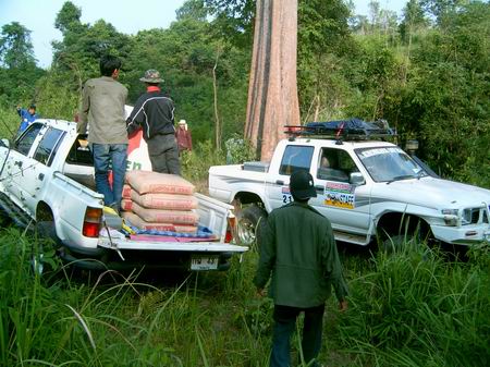 สำหรับการสร้างฝายแม้วในครั้งนี้นะครับ ก็จำเป็นอย่างยิ่งนะครับที่จะต้องให้รถยนต์ออฟโรด เข้ามาช่วยในการขนถ่ายและลำเลียงอุปกรณ์ที่เราจะใช้ในการก่อสร้างฝายแม้ว เพราะทางที่เราไปในครั้งนี้นะครับ รถยนต์ขับเคลื่อนสองล้อไม่สามรถเข้าไปได้ การสร้างฝายแม้วในครั้งนี้นะครับเราได้ทำการแบ่งออกเป็นสองกลุ่มใหญ่ๆโดยเราทำการสร้างที่ห้วยจำปา 11 ฝายและฝั่งทางห้วยน้ำตก 14 ฝาย รวมทั้งหมดเราสร้างทั้งหมด 25 ฝาย และใช้เวลารวมทั้งสิ้น 7 วันจำนวนนักศึกษา 80-90 คน