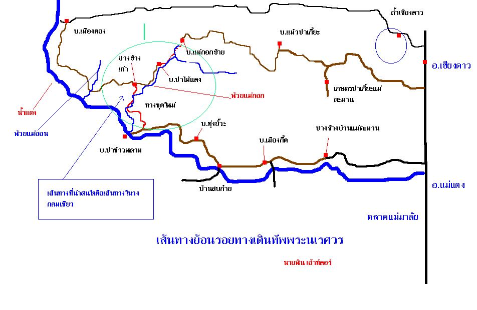 ก็เอาตามนี้ก็แล้วกันครับ....(เส้นทางเขาไปกันนะ)ส่วนจะเป็นเส้นทางเดินทัพเก่าหรือไม่นั้นผมไม่ทราบครับ....เพราะมันเป็นตำนานที่นานเกินไปครับ