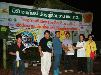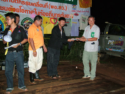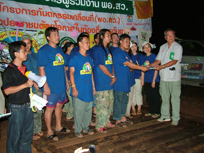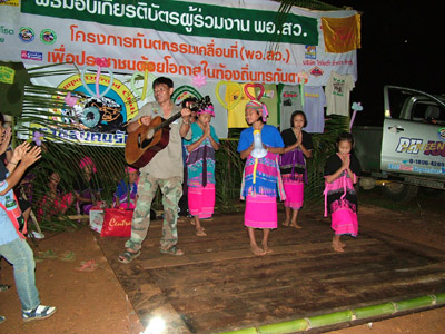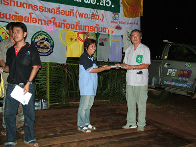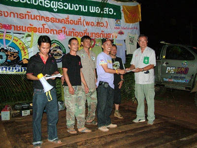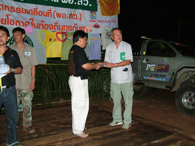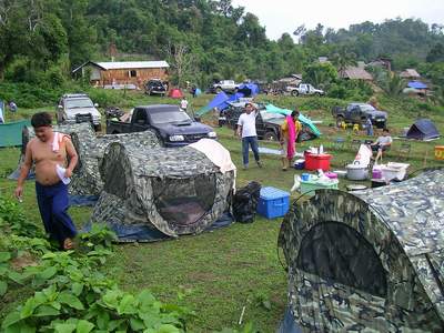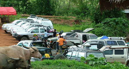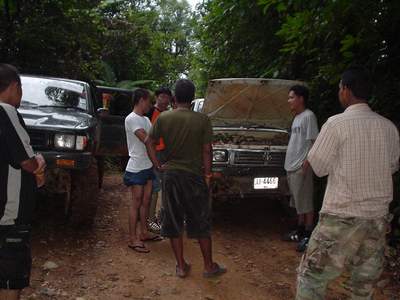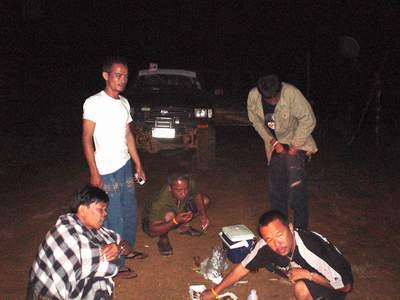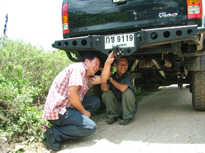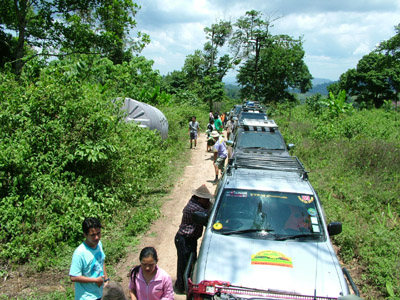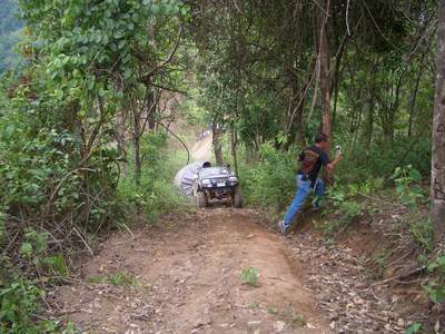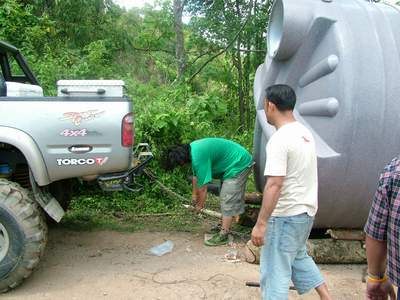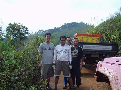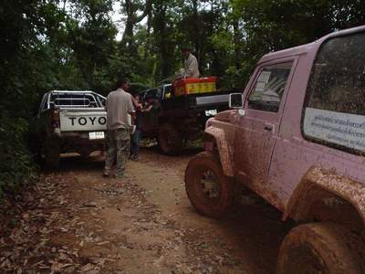 2.หลังจากนั้น ขบวนเดินทางสมทบ ทีมงาน พอสว.ที่บ้าน ตือลือ ส่วนพมเองออกไปหาเสบียงเพิ่มที่ อ.แม่ระมาด และไปสมทบกับชาวออฟโรด.ที่จอดรอที่ปากทางเข้า ห้วยกระทิง เพื่อลากถังน้ำ ขึ้นห้วยกระทิง ช่วงบ้าน (ตือลือ ใครมีรูป ลงแจมด้วยครับ) ( นาย คริศ ใจเย็นๆอย่าทำเป็นไวรุ่นใจร้อน รถยกเครื่องลงแล้ว..ละจะบอกให้ หยุดเที่ยวสักพัก นะเจ้าหนู)