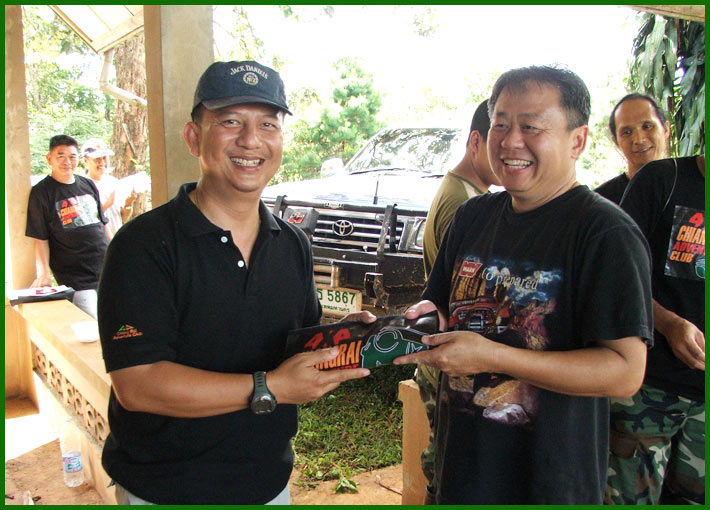 ทริปนี้ท่านวีระศักดิ์(ระพินทร์)ประธาน4x4เชียงรายแอ็ดแวนเจอร์โทรถึงเพื่อนๆสมาชิกอย่างกระทันหันบอกว่าได้รับการชักชวนจากคุณอ้วนเจ้าของเหมืองแร่แมงกานีส หนึ่งในสมาชิกของชมรมให้ไปกินข้าว+นอนกางเต็นท์คุยกันในเหมืองของท่าน เนื่องจากเป็นแบบกระทันหันจึงมีสมาชิกบางท่านเตรียมตัวไม่ทันที่จะไปนอนอ้างค้างแรม(สมาชิกส่วนใหญ่ยังเป็นหนุ่มแก่อ่อนต่อโลก)แต่ก็จะตื่นแต่เช้าไปสมทบหากจะไปขับรถไต่ดอยกันที่ไหนก็จะไปด้วย