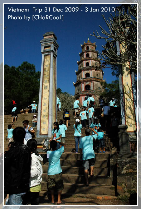 นั่งรถโค้ชไปชมวัดเทียนมู่ ซึ่งตั้งอยู่บนฝั่งซ้ายของแม่น้ำหอม ประกอบด้วยหอคอย 8 เหลี่ยม 7 ชั้น แต่ละชั้น
