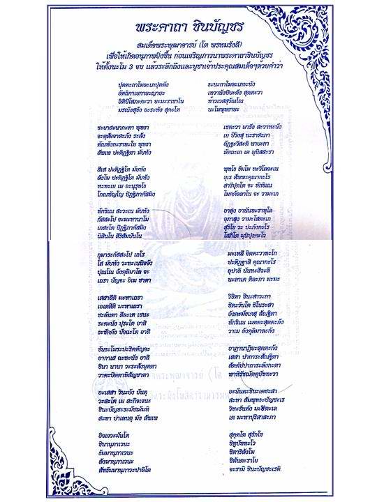 เมื่อวานนี้ตอนที่ไปกราบไหว้รูปจำลองสมเด็จพุทธาจารย์ โต พรหมรังษี ที่วัดอรุณราชวรารามอยู่นั้นก็ได้เห็นกระดาษใบหนึ่งวางอยู่ตรงหน้าระหว่างที่กำลังอธิษฐานจิตรขอพรอยู่นั้น จึงได้หยิบมาดูพบว่าเป็นพระคาถา ชินบัญชร จึงได้เก็บไว้ครั้นกลับมาถึงบ้านนำออกมาอ่านพบว่าด้านหลังมีข้อความพิมพ์อยู่ดังนี้