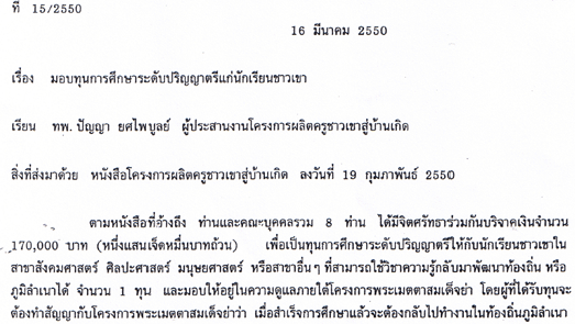 [b]โครงการผลิตครู(ชาวเขา)สู่บ้านเกิด[/b]