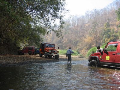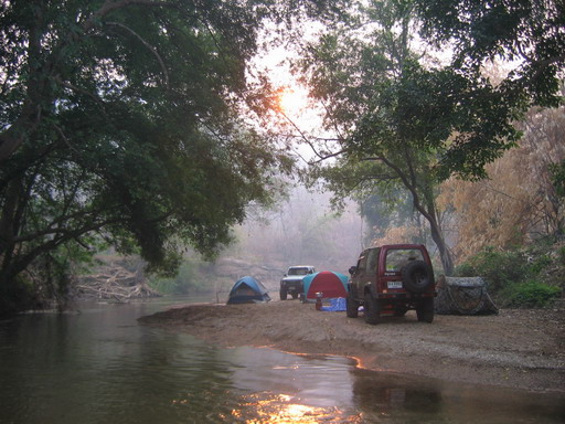 ผมเองก็เคยลงให้เพื่อนๆทราบที่เว็บจีพคลับบ้างแล้ว หลายท่านไปกันมาก็ติดอกติดใจกันไม่น้อย......ก็ที่ อช. ออบขาน ที่อยู่ไม่ไกลจากตัวเมืองเชียงใหม่ นี่เองครับ ผมเองนั้นชอบเสาะเส้นทางออฟโรดไกลๆมามาก พอไม่ค่อยสบายก็ไม่มีโอกาสนั้นอีก เลยเป็นที่มาของเส้นทางนี้ครับ.....หลังจากที่ชวนเพื่อนๆจากหลายชมรม พยายามลุยตามน้ำจาก อช.ออบขานไปให้ถึงบ้านห้วยโท้ง มาหลายครั้งก็ไม่สำเร็จสักที เพราะน้ำลึก ทรายดูด ยิ่งปั่นยิ่งจม แต่ความพยายามอยู่ที่ไหนบวกกับความเป็นคนชอบลุยของเพื่อนๆทั้งหลาย ในที่สุดก็สำเร็จครับ ...ตอนนี้ระดับน้ำน้อยมาก บนหาดทรายที่สวยงาม ร่มรื่นไปด้วยต้นไม้ริมน้ำ เหมาะสำหรับขับรถไปพักผ่อน แค้มป์ปิ้งค์....มากครับ โดยเฉพาะช่วงสงกรานต์นี้ หากว่าไม่ทราบว่าจะไปนอนที่ไหนดี ผมขอแนะนำที่เลยครับ....ใกล้ๆแต่ได้ธรรมชาติ.....หาดทราย สายน้ำใส .....เสียงนกนานาชนิด ชายหาดที่ 7 ที่ 8(จากท่าน้ำแรกใน อช.) ห่างจากผู้คนเช้าๆในความเงียบสงบ เสียงนกกระทาป่าร้องเรียกคู่ เป็นเสียงที่หาฟังได้ยาก ในป่าใกล้เมืองเช่นนี้.....พอสายๆหน่อยวงดนตรีแจ๊สจักจั่นก็จะบันเลงลั่นป่า.......