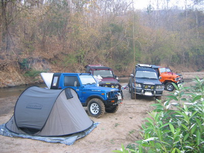เส้นทางที่สองก็คือขับ ขึ้นมาตามลำน้ำแม่ขาน เริ่มจากท่าทรายบ้านห้วยโท้ง ขับขึ้นมาเรื่อยสักสองกิโล หาที่พักตามอัธยาศัย....อย่าขับขึ้นไปในสวนชาวบ้านนะครับ เราอาจจะไปทำให้ท่อน้ำเขาแตกเสียหายได้ครับ