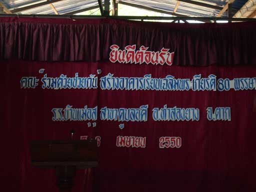ด้วยความร่วมมือ ร่วมแรง ร่วมใจ จากพันธมิตรเคลือข่ายหลายๆหน่วยงานจึงทำให้อาคารเฉลิมพระเกีรติ 80 พรรษา สำเร็จได้ด้วยดี ทุกประการ จึงใคร่ขอขอบพระคุณผู้มีส่วนร่วมทำให้ได้รับความสำเร็จตามจุดประสงค์ทุกท่านทุกหน่วยแทนเด็กผู้ด้อโอกาสในท้องถิ่นทุรกันดารบนดอยสูงและห่างไกลความเจริญ ซึ่งครั้งนี้นับว่าเป็นอาคารหลังแรกของโครงร่วมระหว่างพันธมิตร
