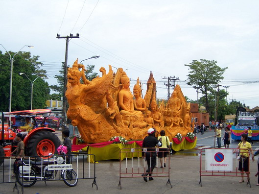 ปีนี้ 2550 นับเป็นบุญตาของข้าพเจ้าจริงแท้ที่ได้มีโอกาสมาเที่ยวชมงานอันยิ่งใหญ่ตระกานตา โดยเฉพาะ รถขบวนรถต้นเทียนที่แต่คุ้มแต่อำเภอได้บรรจงประดิษฐ์ประดอยตกแต่งได้อย่างสวยงามยิ่งใหญ่มาก บางอำเภอต้องตกแต่งต้นเทียนเป็นขบวนรถพ่วง 18 ล้อเลยทีเดียวสุดจะบรรยายจริงๆเพราะเมื่อเดือนก่อนผมมีโอกาสได้ไปร่วมขบวนแห่"ผีตาโขน"ที่อำเภอด่านซ้าย จังหวัดเลยมาก็คิดว่าผู้คนที่สนใจมาชมงานทั้งไทยและต่างประเทศยังน้อยกว่า"งานแห่เทียนพรรษาที่จังหวัดอุบลราชธานี"หลายเท่า เชิญชมภาพต่อไป ครับ