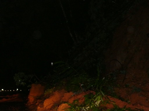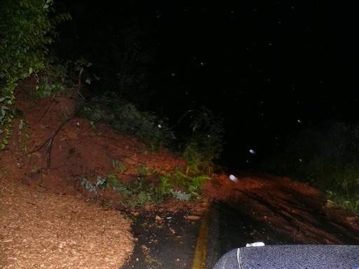 เพราะว่าผมเข้าไปตรงเส้นทางนี้ตอนตี 1 ขับเข้าไปต้องลงไปเอาไม้ออกตลอดทางเลยน่ะ เข้าไปได้ประมาณกม.14 เท่านั้นเองน่ะ เจอดินถล่มขวางทางยาวมากต้นไม้ล้มขวางขนาดใหญ่ไปต่อไม่ได้