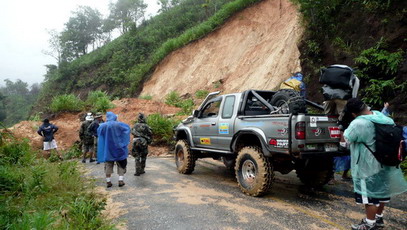 ฝนที่ตกลงมาอย่างต่อเนื่อง ทำให้วันนี้ยังไม่สามารถเปิดเส้นทางเข้าออกพื้นที่บ้านอีต่องได้ เนื่องจากดินภูเขาชุ่มน้ำไหลลงมาปิดทับเส้นทางอยู่ตลอด