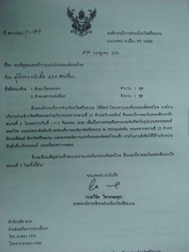 คำตอบที่ 84 ศรีสะเกษจัดได้เยี่ยม ยิ่งใหญ่จริงๆครับและได้พ่อเมืองคนใหม่ชอบออฟโรดยิ่งใหญ่ขึ้นไปอีก แบบนี้ออฟโรดแถบนี้รุ่งแน่คร๊าบ