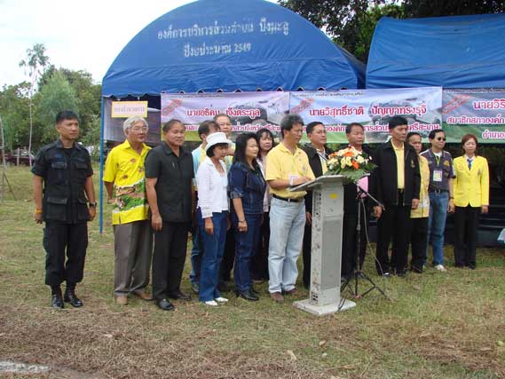 คำตอบที่ 39 ท่านประธานทำการตัดลิปบิ้นโดยมีท่านนายอำเภอกันทรลักษณ์(เสื้อเหลือง)และผู้หลักผู้ใหญ่อีกหลายท่านมาร่วมในพิธีนี้ด้วย
