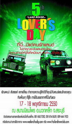 เชิญเที่ยวงาน 'Land Rover Lover Day' ครั้งที่ 5 ในวันที่ 17-18 พฤศจิกายน 2550 ณ สนามนิยมไพร อ.มวกเหล็ก จ.สระบุรี (ตามแผนที่)