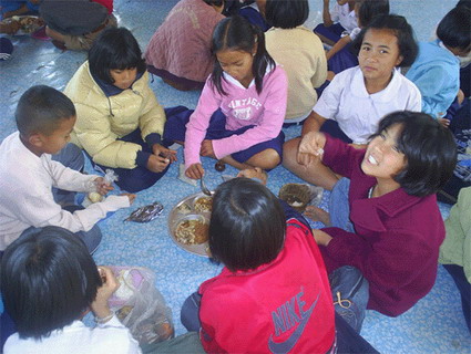 15 ธ.ค. 50 เลี้ยงอาหารกลางวันเด็กนักเรียนโรงเรียนธรรมนูญกองช่างวิทยาเขาค้อ จ.เพชรบูรณ์ ทำบุญเลี้ยงเพลพระ พร้อมกับแจกรองเท้า,ถุงเท้านักเรียน, กระดาษ a.4 เครื่องกรองน้ำ, อุปกรณ์การเรียนการสอนเด็กอนุบาล ตลอดจนอาหารแห้งพร้อมเครื่องปรุงอาหารกลางวันเด็ก นำโดยคุณพิจิตร กองช่าง (ลุงหนวด) พร้อมญาติพี่น้อง และเพื่อนๆ ร่วมกันทำกิจกรรมในครั้งนี้เสร็จแล้วร่วมรับประทานอาหารกลางวันโดยพร้อมเพียงกัน
