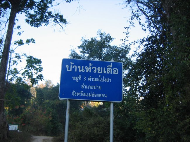 *แม่เมืองหลวงกระเหรี่ยง เลี้ยวขวาไปห้วยเดื่อ เหนือ - ใต้ ทางพอสนุก ไม่ยาก ชาวบ้านที่นี่ค่อนข้างยากจน(กระเหรี่ยง) มีโรงเรียน หน้าโรงเรียนมีลานกว้าง (6 กม.)