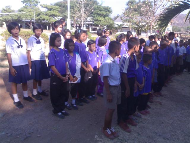คำตอบที่ 36 ครูใหญ่กับน้องๆ มาตั้งแถวรอรับอุปกรณ์การเรียน