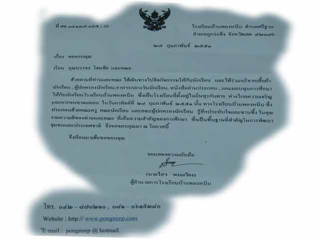 และขอขอบคุณร้าน Kitty ของคุณกิ้วและคุณโจ แห่งศูนย์การค้าปทุมทอง ที่ได้สนับสนุน ขนมและน้ำหวาน เป็นจำนวนเงิน 1,000 บาท ขอให้บุญกุศลที่ท่านได้ทำในครั้งนี้จงบันดาลให้กิจการของท่านรุ่งเรืองและมีความสุขตลอดไป