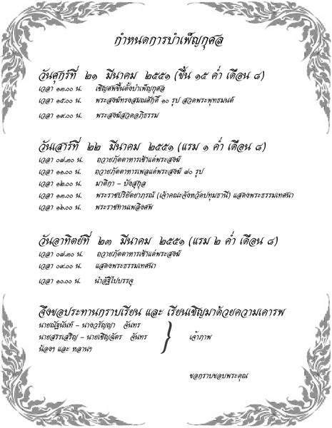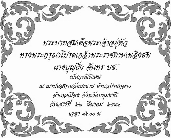 ขอเรียนเชิญชาวออฟโรดทุกท่าน ร่วมพิธีพระราชทานเพลิงศพ คุณแม่บุญยิ่ง จันทร บช. เป็นกรณีพิเศษ ณ ฌาปนสถานวัดมะขาม ตำบลบ้านกลาง อำเภอเมือง จังหวัดปทุมธานี ในวันเสาร์ที่ 22 มีนาคม 2551 เวลา 16.00 น.
