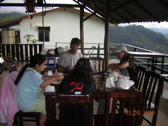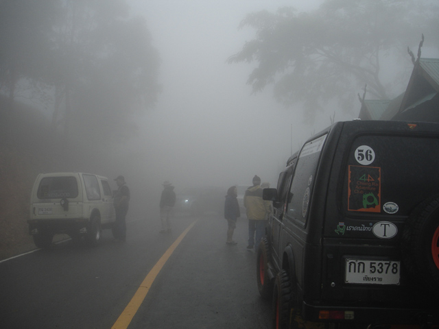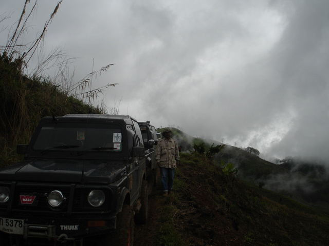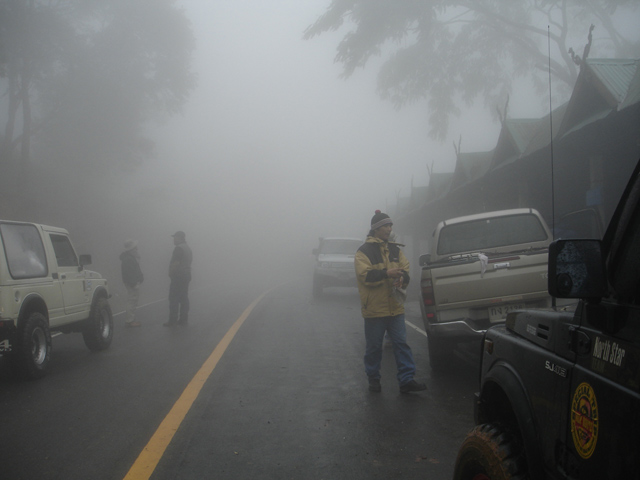 ท่าน"นางแล"ไม่ได้เตรียมเสื่อกันหนาวไปด้วยกลับมาเป็นไข้หรือเปล่าครับ แต่ยังดีที่มีYLไปด้วย "XYLของท่านชายแดน"ก็ไม่ได้ติดเสื้อกันหนาวมาด้วย บอกว่าออกทริปมาหลายทริปไม่เคยพลาดเหมือนครั้งนี้ยังดีที่มีท่าน"ชายแดน"ช่วยให้ความอุ่นได้ ส่วนท่าน"ตะกายดอย"ก็ไม่ได้ติดเสื้อกันหนาวไปด้วยเพราะอยู่ข้างล่างอาบน้ำเสร็จก่อนออกเดินทางเสื้อยังชุ่มไปด้วยเหงื่อและไม่มีLY ติดไปด้วยมีแต่OMที่ขอนั่งไปด้วยเลยต้องนอนหนาวผวากับพายุฝนตลอดคืน อีกท่านคือ "ท่านมดแดง"คนนี้รอบครอบเตรี่ยมพร้อมทุกอย่างไปสมทบกับคณะที่ผาตั้งประมาณ23.00 น.พรรคพวกเตรียม(ของเหลือ)อาหารการกินไว้คอยมีทั้งขาหมูผาตั้งจากท่านนางแล,กุ้งเผาตัวเขื่องๆจากท่านขุนเดช,ลาบหมูจากท่านช้างดำ,เค็กนกน้อย,วายและคอกแนก(บรั่นดี)จากท่านชายแดน หลังจากกวาดเลียบประมาณตี 1 กว่าทนหนาวไม่ไหว ก็หลบพายุเข้าไปนอนในรถกับท่าน"ยอดใผ่"ตอนประมาณตี 3 พายุกรรโชกแรง"ท่านยอดใผ่"บอกว่ามดแดงเอะอะโวยวาย ดิ้นทุรนทุราย ท่ายยอดใผ่เลยประเคนสอกขวาไป 2 ทีเหตุการจึงสงบ"ท่านมดแดง"บอกว่าผีอำ ที่แรกเป็นผีผู้หญิง ตัวที่สองเป็นผู้ชาย ผมว่าน่าจะเป็นผีกุ้งกับผีวาย เพราะดูจากหลักฐานตอนเช้าพบซากศพกุ้งหัวแหลกละเอียดกระจายไปทั้วขวดวายและบลั่นดีล้มระเนระนาด ต้องรีบทำพิธีเรียกขวัญนะนี้ ขวัญอ่อน!