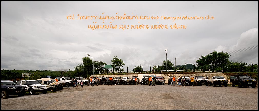 วันอาทิตย์ที่10 ส.ค. 51 ที่ผ่านมาทางชมรม 4x4 Chiangrai Adventure Club ร่วมกับผู้ให้การสนับสนุนโครงการวันแม่แห่งชาติของพวกเราชาวไทย ชาวชมรมฯได้นำมุ่งกันเจ้ายุงตัวร้ายไปมอบให้กับชาวบ้าน...บ้านห้วยน้ำมา หมู่15 ต.แม่สรวย อ.แม่สรวย จ.เชียงรายซึ่งเป็นหมู่บ้านตั้งอยู่บนดอยสูงเส้นทางค่อนข้างสูงชันเป็นหลุมบ่อโดยเฉพาะฤดูฝนแบบนี้การไปมาค่อนข้างมีปัญหาสำหรับชาวชุมชนที่ต้องออกมาจับจ่ายซื้อหาสิ่งของเครื่องใช้ เนื่องจากช่วงนี้ได้มีการระบาดของโรคไข้เลือดออก ซึ่งสาเหตุใหญ่ๆแล้วเกิดจากการถูกยุงกัด