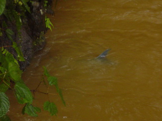 คำตอบที่ 66 ไปดูปลาพวง........เนื่องจากฝนเพิ่งหยุดตกไปน้ำเลยขุ่นมากมองเห็นแค่หลังปลาเอง...ตัวใหญ่