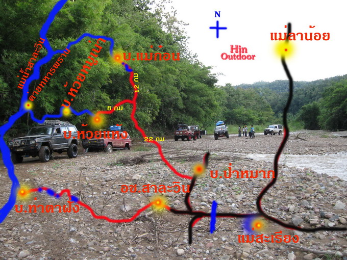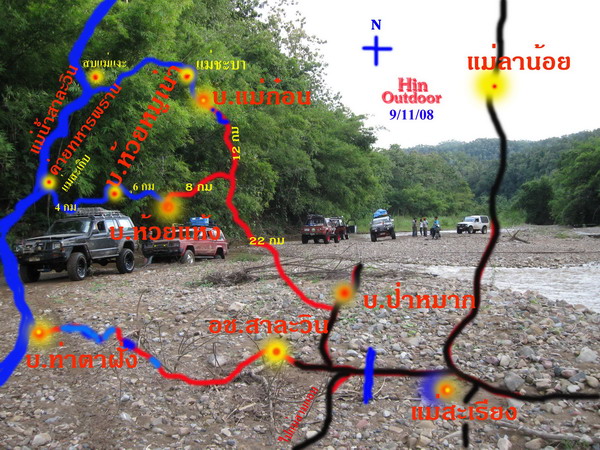 ปีนี้เข้าป่าช่วยงาน พอ.สว. เป็นทริปที่สาม ทริปนี้ร่วมงานกับชมรมผู้เฒ่า 4wd team นำโดยคุณภิเด๊จ กุณะ หรือขุนเดช นอกจากนั้นยังมีท่านผู้อาวุโส ลุงแดง ยอดดอย มาด้วยอีกคันหนึ่ง โกสมชาย ไฮเทคและเพื่อนๆชมรม ช.ช้าง อีกหลายคัน บนเส้นทางที่เลาะเลียบไปตามตะเข็บชายแดนพม่าที่มีลำน้ำสาละวินกั้นพรมแดนอยู่