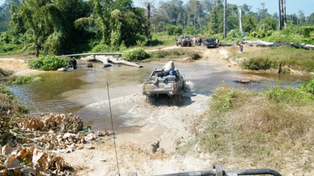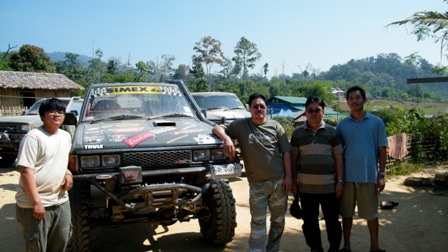 คำตอบที่ 22 การเดินทางในครั้งนี้เราได้รับการอำนวยความสะดวกจากเจ้าหน้าที่ทั้งของไทย และของประเทศพม่า ทำให้การเดินทางในครั้งนี้ค่อนข้างมั้นใจในความปลอดภัย แต่ก็ไม่ร้อยเปอร์เซ็นนัก เพราะตะเข็บชายแดนบ้านเรายังมีชนกลุ่มน้อย (กระเหรี่ยง)ฝั่งตัวอยู่บ้าง ซึ่งก็หมายความว่า ยังมีความน่ากลัวสำหรับชาวไทยที่เข้าประเทศพม่าอย่างเรา....ครับ ในภาพทั้งไทยและพม่าต้องช่วยกันขย่มรถครับ พื้นล่างเป็นดินมันปู ล้อมันฟรีอย่างเดียว