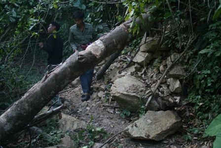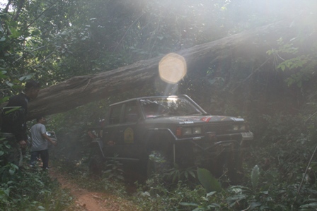 คำตอบที่ 78 ท่อนนี้ล้มอยู่นานแล้ว หญ้าคุมจนเรามองไม่เห็น คันนำหน้าปีนข้ามไปแล้วล้อเกิดลื่นไถลไปตามความยาวของท่อนไม้ หวุดหวิดที่จะหล่นร่องเหวทางขวามือ..สุดท้ายต้องช่วยกันผลิกออกไป เพื่อความปลอดภัยครับ.......