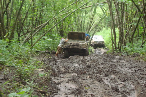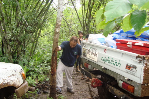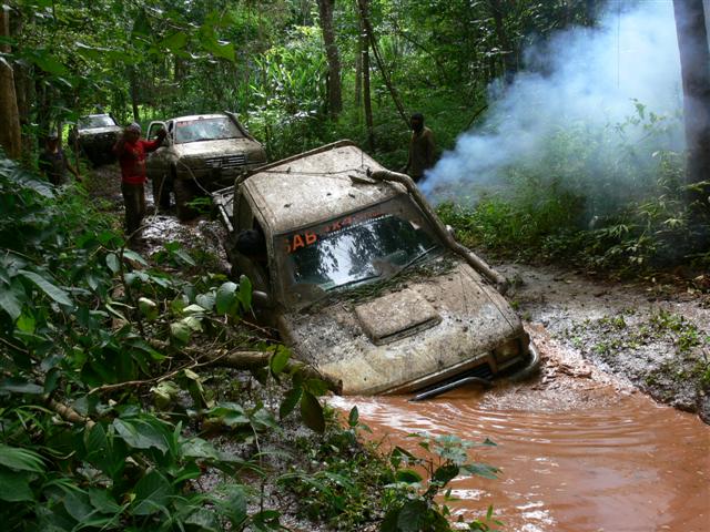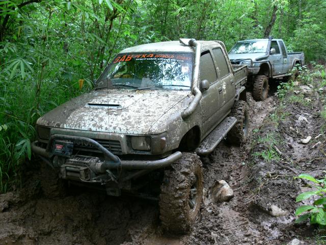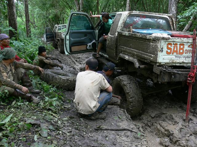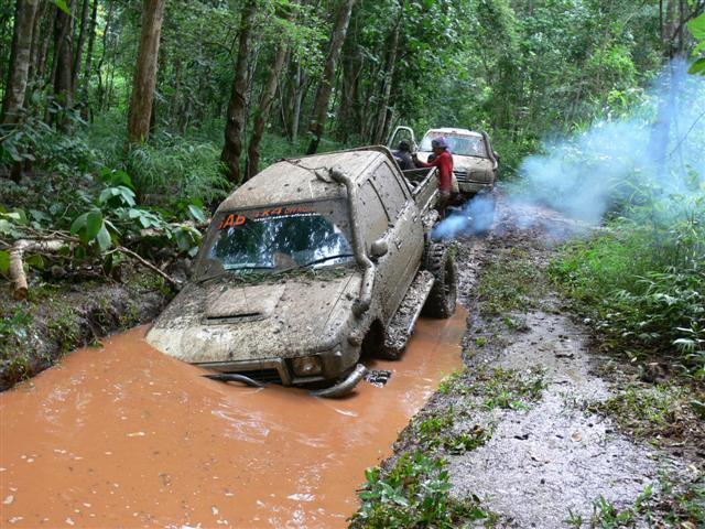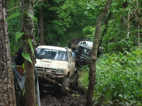 เมื่อเสาร์-อาทิตย์ที่ผ่านมา ทางกลุ่ม SABx4(แซบคูณสี่)และกลุ่มใบไม้ป่าได้มีโอกาศไปเยือนป่าแถวเมืองกาญจน์ดินแดนแห่งเส้นทางออฟโรด ทางกลุ่ม sab ออกเดินทางจากโคราชประมาณ4โมงเย็นแล้วไปคอยกลุ่มใบไม่ป่าที่น้ำพุร้อน พอตื่นเช้ามาเราเลือกที่จะเข้าไปลิ้มลองเส้นทางของลำคลองงูก่อนแล้วค่อยออกมาต่อกันที่คิตตี้(วางแผนกันไว้เช่นนั้น)แต่เส้นทางข้างหน้าจะป็นเช่นไรเราก็ไม่อาจรู้ได้ รถ12คันที่เข้าไปร่วมชตากรรม ผลก็คือ2วันครึ่งกับ2คืนครับพี่น้อง รถบางคันออกมาแทบไม่ต้องซ่อมอะไรเลยแต่บางคันซิครับแทบที่จะต้องเปลี่ยนช่วงล่างกันใหม่หมดและแล้วโอกาศที่เราจะไปต่นั้นก็หมดหนทาง เราต้องกลับไปเยียวยาบาดแผลกันก่อนแล้วค่อยกลับไปหาเธออีกครั้ง...คิตตี้