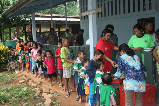 อิ่มบุญกันไปทุกท่านครับ....ยังมีผู้ร่วมบริจาคอีกหลายท่านที่ไม่ได้รายชื่อใว้ล่วงหน้า...ดังนี้ครับ ช่างไก่ อ.บ.ต.ปากน้ำปราณ มอบข้าวสาร 1 กระสอบ , เป็บซี่ปราณบุรี มอบเครื่องดืมเย็นๆ , ศูนย์ฮอนด้าหัวหิน มอบเงินบริจาคจำนวนหนึ่ง , และกลุ่มเพื่อนปากน้ำสมุทรปราการ มอบเงินทุนเป็นค่าอาหารกลางวันสำหรับเด็ก 10,000 บาท...เอ้า...ลืมแจ้ง ดนตรีเปิดหมวกงานนี้ได้มา 7,000 กว่าบาทก็มอบให้กับทางศูนย์หมดเลยเช่นกัน..