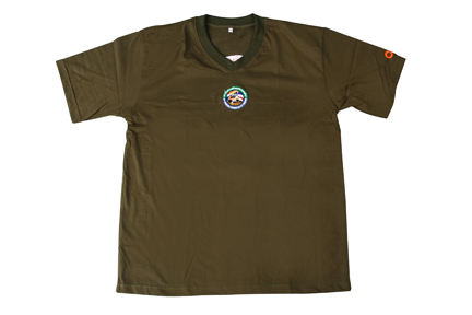 เสื้อยืดคอวี ปักอาร์มโลโกสมาพันธ์ออฟโรด ตรงกลางอกสีสวยสะดุดตา มีจำนวนจำกัด และเสื้อยืดสีดำสกรีนโลโก้สมาพันธ์ฯ กลางอก