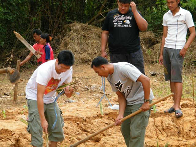 ........การออกค่ายอาสาพัฒนาครั้งนี่ ได้การหารือกันระหว่าง ชมรมประจวบออฟโรดคลับและน้องๆนักศึกษาเพื่อหาแนวทางไปสู่ความยั่งยืนของศูนย์เด็กเล็กฯ โดยสรุปว่า การที่จะให้ศูนย์เด็กเล็กบ้านท่าไม้ลาย มีความยั่งยืนและหล่อเลี้ยงตัวเองได้นั้น ต้องอาศัยหลักปรัชญาเศรษฐกิจพอเพียง ตามแนวพระราชดำริห์ของพระองค์ท่าน มาเป็นแนวทางจึงจะสำเร็จ ....เริ่มจากแปลงผักสวนผสม...ขุดบ่อเลี้ยงปลา...สร้างคอกไก่เพื่อเลี้ยงไก่ไข่ และ ฯลฯ
