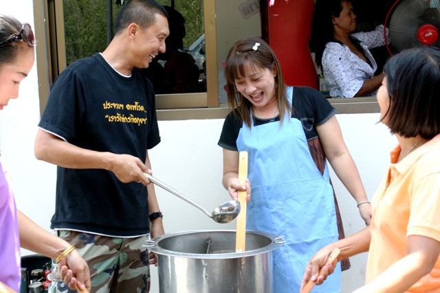 พ่อค้าก๋วยเตี่ยว(จำเป็น)คุณพงษ์ศักดิ์ จันทร์นิล ผู้อยู่ดูแลพื้นที่แห่งนี้ และเป็นผู้จุดความคิดกิจกรรมนี้ขึ้นมา... ซึ่งก่อนหน้านี้ได้ร่วมจัดทอดผ้าป่าการศึกษาให้กับโรงเรียนบ้านโป่งเกตุเมื่อต้นปี 53 ที่ผ่านมามาดๆ......งานนี้ลงมือทำก๋วยเตี๋ยวให้กินกันด้วย...อร่อยครับขอบอก