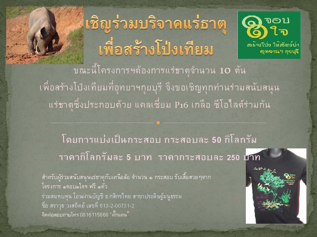 เพื่อนๆพันธมิตรเราชาวออฟโรดและนักเที่ยวป่า สร้างประโยชน์ โดยทางเผ่าเหนือล้อ มีข่าวมาฝากมาเรียนเชิญ ทุกท่านเข้่าร่วมงาน " โครงการ 1 จอบ 1 ใจ สร้างโป่งให้สัตว์ป่า ที่ อุทยานแห่งชาติ กุยบุรี " ในวันที่ 24-26 กรกฎาคม 2553 นี้ โดยมีรายละเอียดดังนี้.....