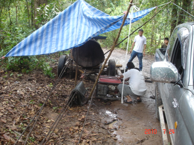 เราพบปัญหาจากอาทิตย์ก่อนว่าระบบเลี้ยวยังไม่ดีนัก เราจึงขึ้นไปในวันเสาร์ที่ 24 ก.ค. เพื่อปรับปรุงระบบเลี้ยวให้สะดวกและคล่องตัวมากขึ้น ด้วยการเพิ่มจุดหมุนด้านบนของไม้และเป็นตัวบังคับไม่ให้ไม้ดิ้นออกด้านข้างด้วย เริ่มงานได้ไม่เท่าไร ฝนตกมาอย่างหนัก ทำให้ไม่มีรูปในขณะทำงาน