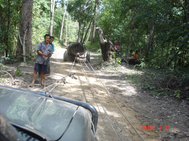 เราขึ้นไปเช้าวันเสาร์เหมือนเดิม ไม่มีฝนแดดดีมาก พื้นแห้งจากวันจันทร์ที่แล้วเราปรับปรุงระบบลากจนเป็นที่น่าพอใจ วันเสาร์ที่ 31 นี้ มีรถของผมกับของ อ.ชายชาญ ขึ้นไปเพียง 2 คัน เราจึงทดลองวินซ์กันก่อน พบว่าสามารถลากไม้มาได้ไม่หนักมากนัก