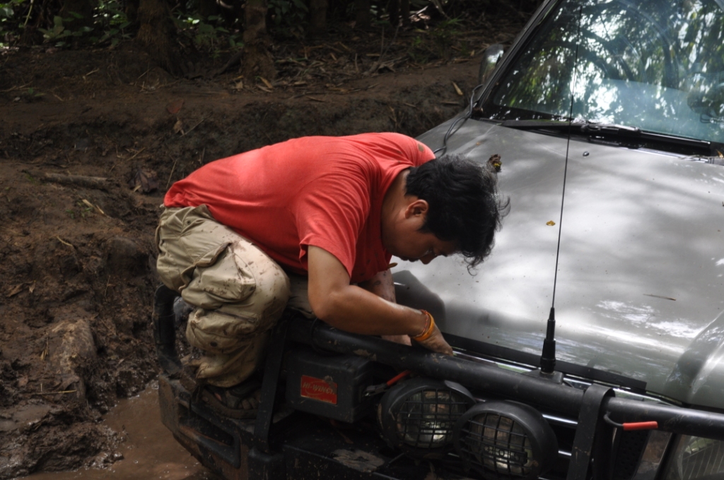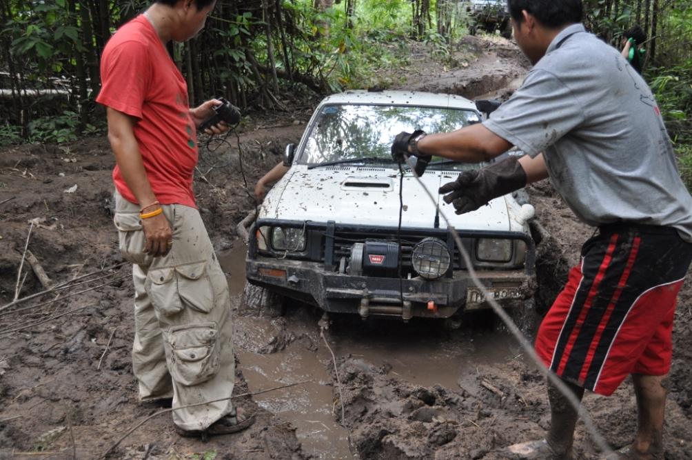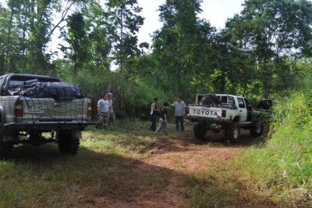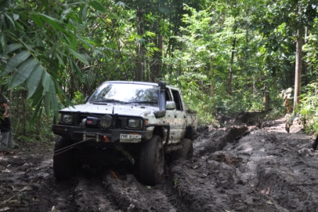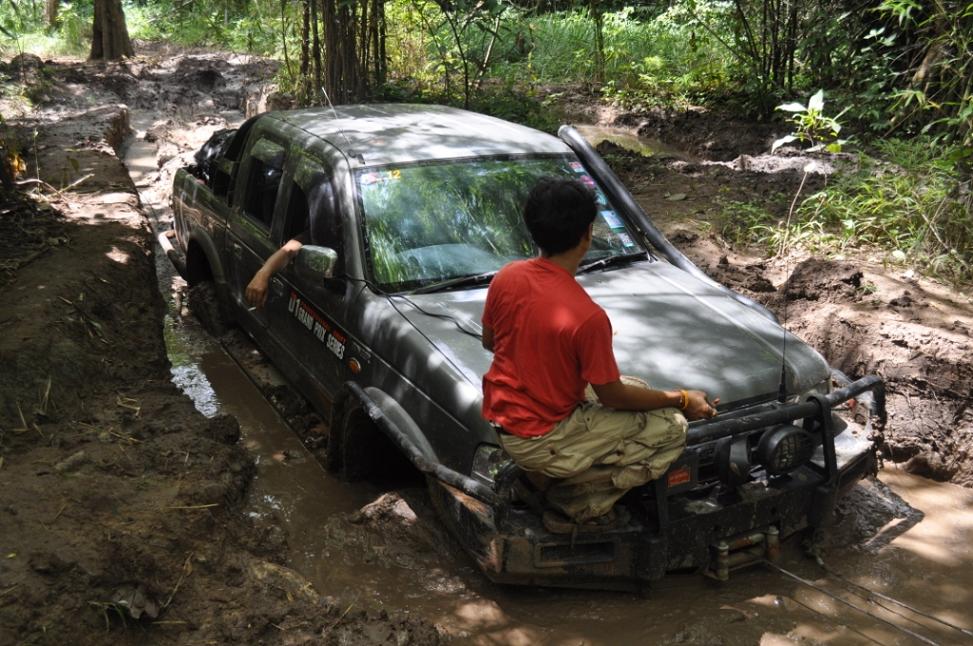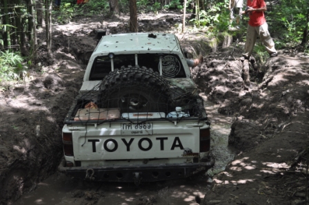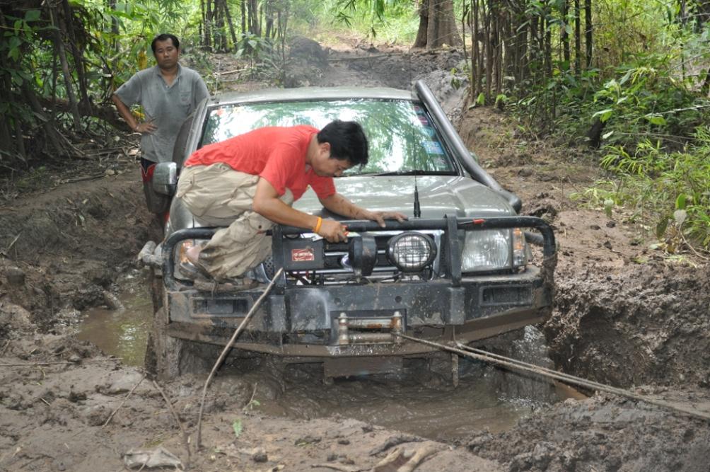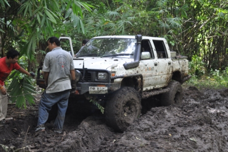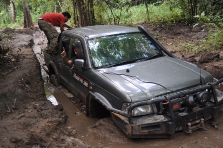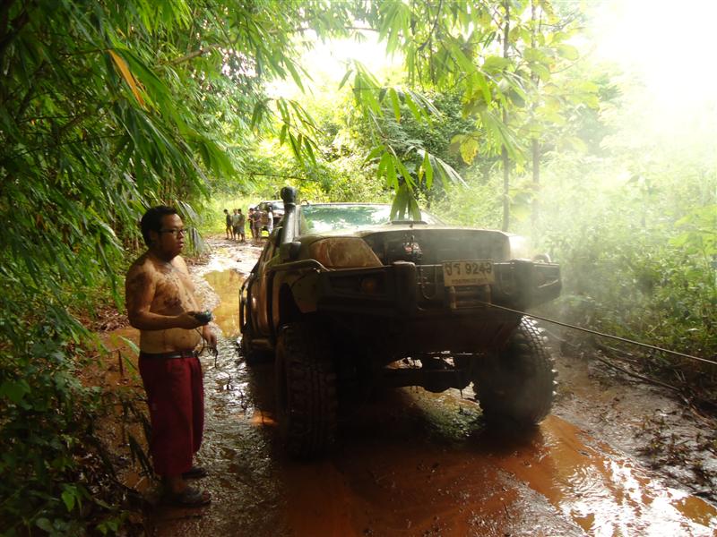 พวกเราออกเดินทางโดยใช้เส้นทาง หอดูไฟเพื่อเข้าไปทางน้ำตกโปร่งกระดังงาเส้นทางช่วงนี้สบายมาก เรามาถึงแยกทางเข้าน้ำตกโปร่งกระดังงา เราก็เยวซ้ายขึ้นมาไม่ถึง ร้อยเมตร ทางผมก็ ว บอกน้าวุฒิว่ามาถูกทางแล้วเจอทั้งร่องลีกและบ่อโคลน ผมโดนวิ้นเป็นวิ้นแรกประเดิมเลย ของที่ใส่มาดิฟล็อกช่วยอะไรไม่ได้มาก เสียงวิ้นโดนดึงลากออกไปเกาะกัยต้นม้ โดยพวกรม่เคยลืมเชือกคล้องต้นไม้ที่จำเป็นต้องใช้ตามหลักของออฟโรด ทั้งผมและน้าวุฒิ ว คุยกันว่ามากันสองคันพยายามขับให้ระวังมากที่สุดคันใดคันหนึ่งงานเข้าจะหมดสนุก บ่อไปได้ด้วยดีโดนกันไปทั้งคู่ หาลายไปทางอื่นไปได้ หลุดจากบ่อแรกมาห้าสิบเมตรก็โดนอีกหนึ่งวิ้นเสียงวิ้นที่ทำงานหนักของผมเริ่มออกอาการ ตัวร้อนทำให้วิ้นได้ช้าลง ส่วนน้าวุฒิยังสบายอยู่แจ้งผมมาทาง ว ว่าก่อนมาทำมาอย่างดีทุกอย่าง หลุดบ่อนี้มาผมก็มาเจอวิ้นที่สามรอบน้แปดสองเจ็ดสี่ของผมเริ่มตัดเป็นช่วงและบ่อยาวมากว่าห้าสิบเมตร ต้องให้น้าวุฒิปลี่ยนลายไปช่วยผมดึงขึ้นมา เราขยับมาได้อีก ร้อยเมตรก็เจออีกบ่อที่ทำให้เสียเวลามากว่าสองชั่วโมง บ่อนี้สแนบ๊อก ตัวเดียวเอารถผมไม่ขึ้น ต้องใช้ถึงสองตัว หลุดรถผมมาน้าวุฒิไม่มีลายให้เปลี่ยนแล้วก็ต้องตามกันลงมา วิ้นขึ้นมากันได้อย่างลำบากทุกคนก็เกิดอาการหมดแรงน้ำข้าวต้ม ในบ่อสุดท้ายต้องขอขอบคุณน้าหม่องที่ใจดีกระโดลงบ่อลงไปลากสายสลิงด้วยต้นเอง จึงทำให้รู้ว่ารถผมต้องเปลี่ยสลิงเนื่องจากมันแข็งทำให้พันกันง่ายมาก ส่วนน้าต้น กับน้าจก ค่อยควบคุมการวิ้น น้าหน่อยก็ถ่ายทั้งรูปถ่ายทั้งท้อง ขึ้นกันมาครบก็กินข้าวเที่ยงกันก่อนส่วนผมก็ได้มีเวลาเปลี่ยนรีเลย์วิ้นเนื่องจากสายพันกันและเก็บไม่เข้า โดนไปอีกสองตัว ดี่ที่เตรียมอะไหล่มา เพราะไม่รู้ว่าข้างหน้าจะเป็นเช่นใด ขึ้นจากจุดนี้มาก็วิ่งสบายแต่มีฝนลงทำให้รถลื่นตลอดทางดีว่าต้องไม่เยอะมาก ใช้เวลาอีกประมาณครึ่งชั่วโมงก็ถึงหน่ยเขารวก บรรยากาศดีมากมีบ้านป่าไม้อยู่สามหลังแต่ว่า ลารน้ำต้องเดินลงไปสักสามสิบเมตร ก็ถือว่ามีน้ำใช้อาบสบาย มาถึงต่างคนก็ต่างทำหน้าที่ของตัวเองกันอย่างดี เตรียมทำอาหารกินกันในคืนนี้เน้นกับแกล้มเหล้าเป็นหลักพ่อครัวหม่องกับพ่อครัวหน่อย สองประมาณกันเป็นอย่างดี บรรยากาศในคืนนั้นเกินคำบรรยายสนุกมากมีสุขสันต์วันเกิดให้น้าหม่องด้วย หวังว่าทริปหน้าได้เจอกันอีกพร้อมรถนะน้าหม่อง น้าหน่อย ขากลับเราออกมาเล่นน้ำกันต่อที่พุถ่อง ถึงปทุมกันโดยสวัสดิภาพไว้เจอกันใหม่ทริปหน้านะ