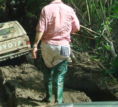 คราวที่แล้วเดินเท้าเปล่าเจ็บเท้าเกือบตาย รองเท้าก็ใส่ไม่ได้ใส่แล้วดึงไม่ขึ้นจากโคลน เอารองเท้าบู้ทธรรมดาไปปรากฎว่าโคลนลึกกว่าความยาวรองเท้าอีก ต้องใช้คำว่าเวรจริงๆ