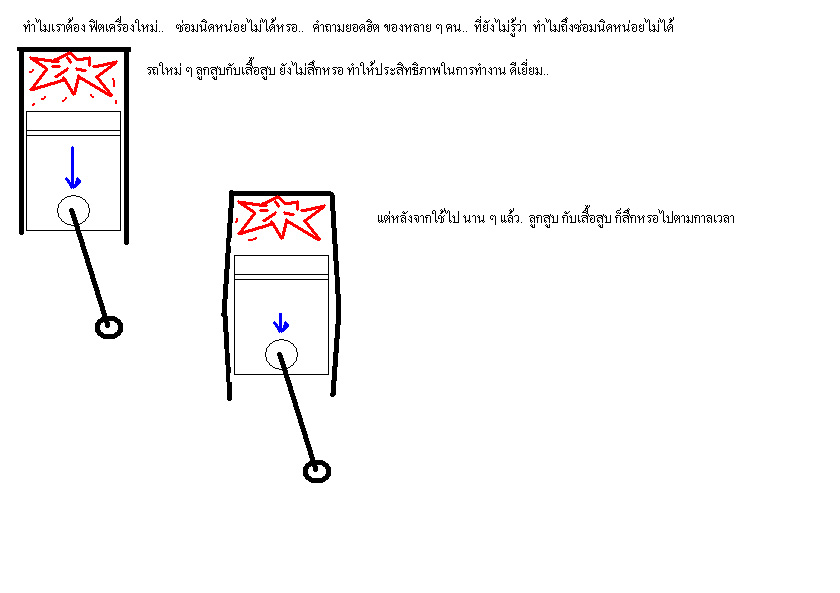 3. สมมุติว่า ปลอกสูบมีการสึกด้านบนมากกว่าด้านล่าง... แหวนจะขึ้น ลง ขึ้นลง ครับ..